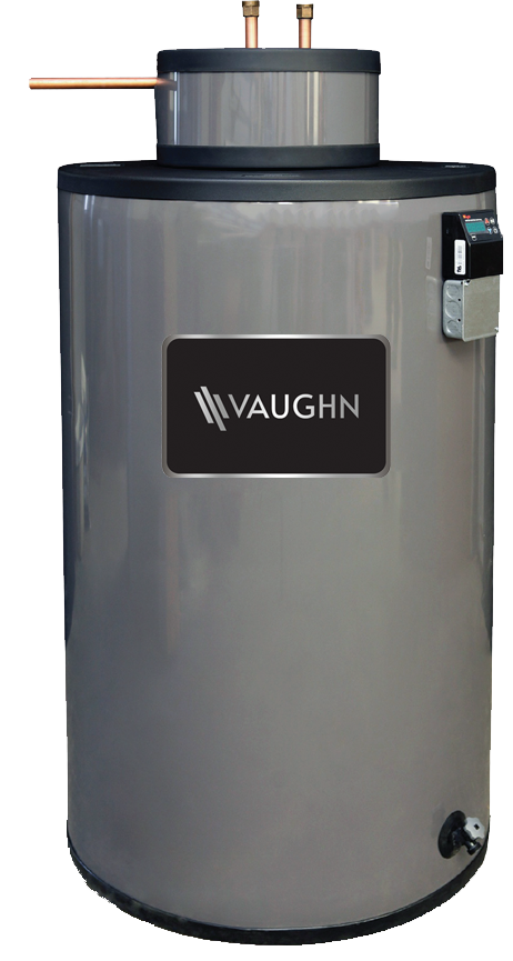 The Vaughn Featherweight Thermoplastic Electric Water Heater offers big performance in a lighter package. Thermoplastic tank construction reduces handling weight without compromising compatibility, temperature control, or performance. There’s no dissimilar metals and no anode rod to maintain. All models feature top-mounted plumbing connections, field removable heat exchanger, and a single-bolt stainless steel collar for quick service access. Digital temperature controls with thermistors give end-users the accuracy they expect. Mixing valve option boosts the capacity 45 or 55 gallon units by storing the water at an elevated temperature.