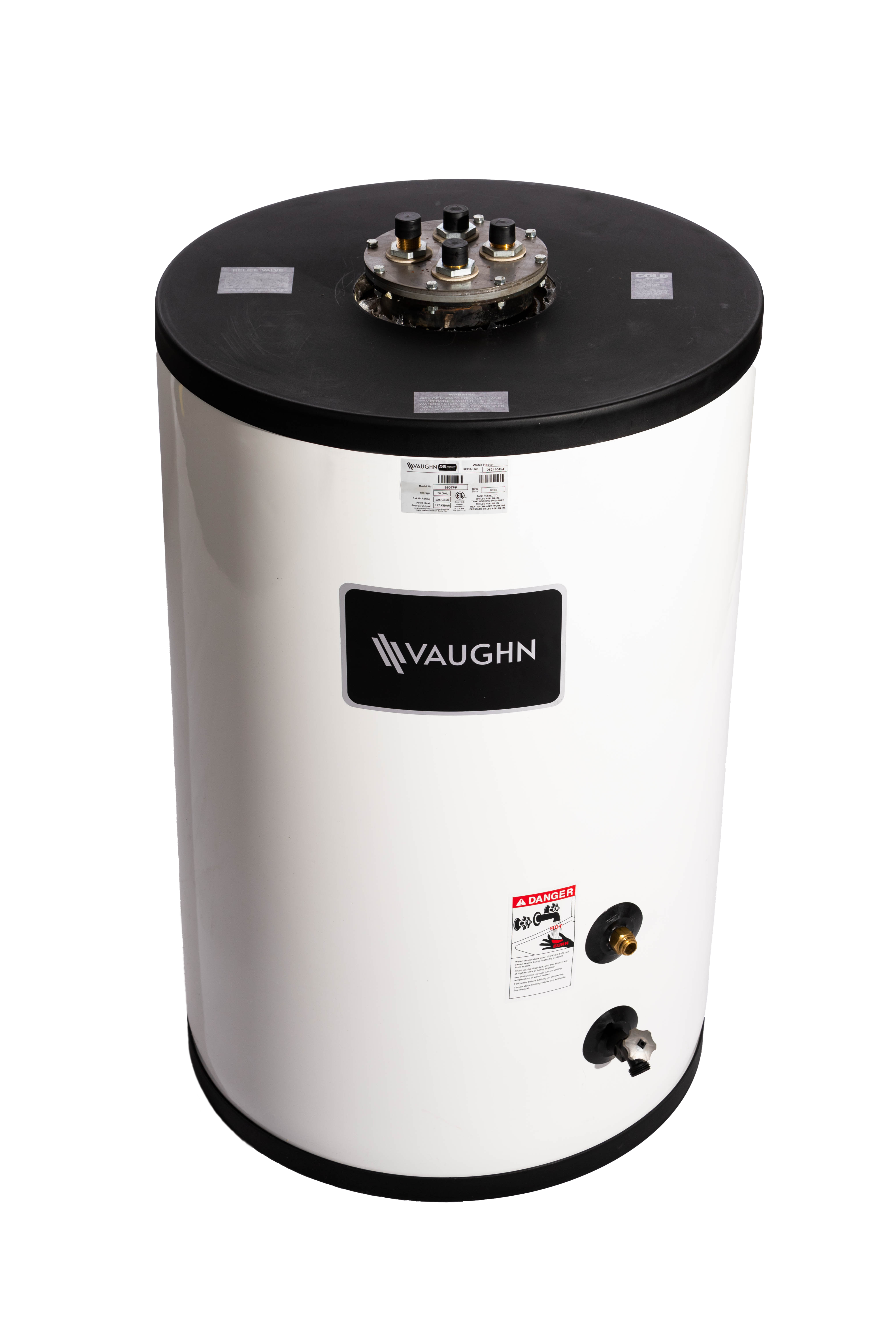 Built to last—and to save you time. The Vaughn Top Performer Plus (TPP) Indirect Water Heater features a field removable copper heat exchanger and top-mounted fittings to make connections straightforward. A cold-water diffuser keeps the heat exchanger clean, cutting scale buildup by 50% and boosting output by over 20%. Plus, ½" HydraStone™ cement lining defends against corrosion from the inside out. With 2" thick CFC polyurethane foam insulation, standby heat loss stays at a minimum. An electronic controller maintains tight temperature accuracy within 2°F and displays real-time system status through a multicolor LED. The TPP arrives ready for install, no on-site assembly required.